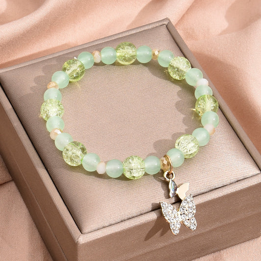 [1 PIECE] Glass Bead Butterfly Charm Bracelet