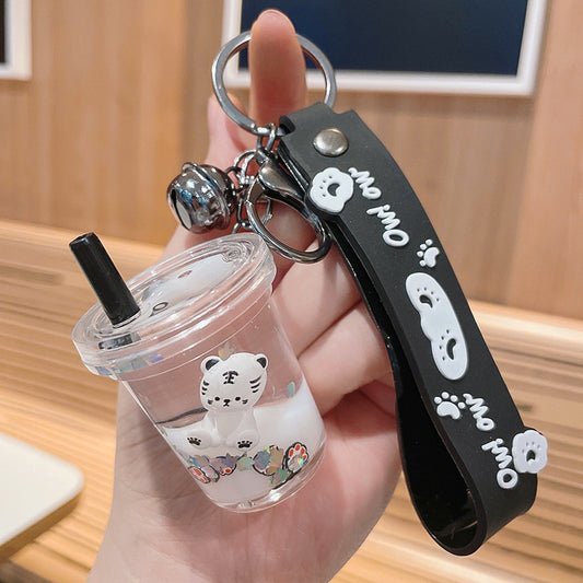 [1 PIECE] Tiger Drink Keychain/Bag Pendant with Strap and Bell