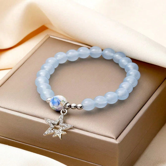[1 PIECE] Rhinestoned Stars Charm Glass Bead Bracelet