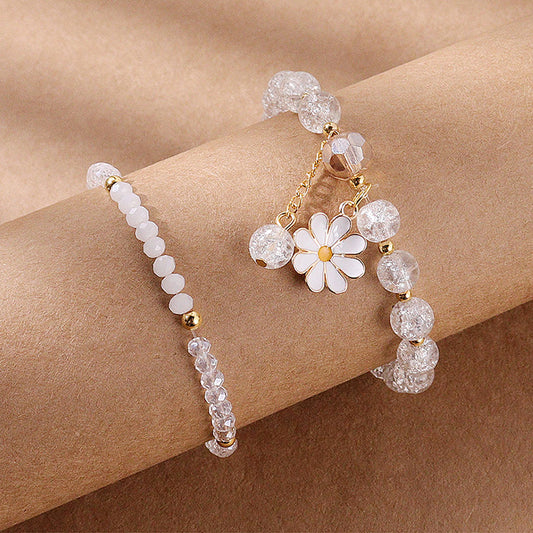 [2 PIECES] Matching Set Glass Bead Bracelets - Micro-beads and Daisy Charm