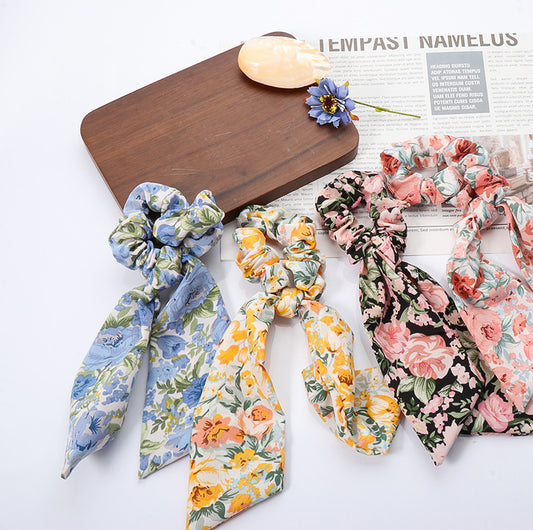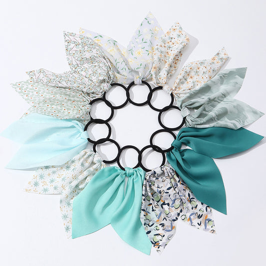 [1 PIECE] Solid and Floral Combination Silky Knotted Hair Tie