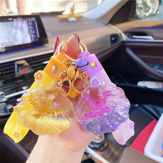 [1 PIECE] Starfish and Shells in an Acrylic Shell Liquid Keychain with Strap