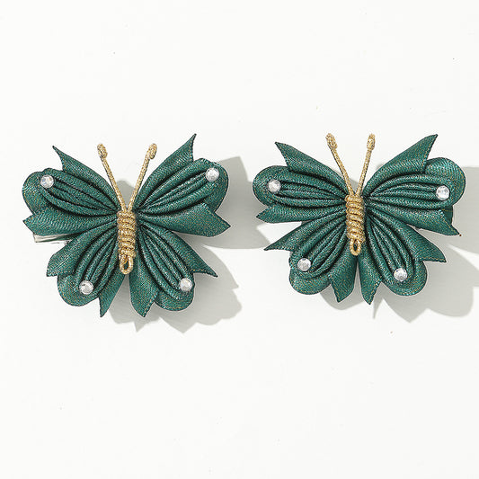 [2 PIECES] Cloth Butterfly with Rhinestones Hair Clips