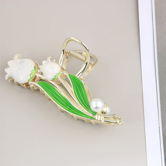 [1 PIECE] Flower and Faux Pearl Metal Hair Claw