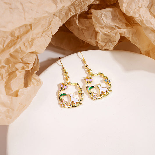 [1 PAIR] Inquisitive Cat with Butterfly Alloy Earrings