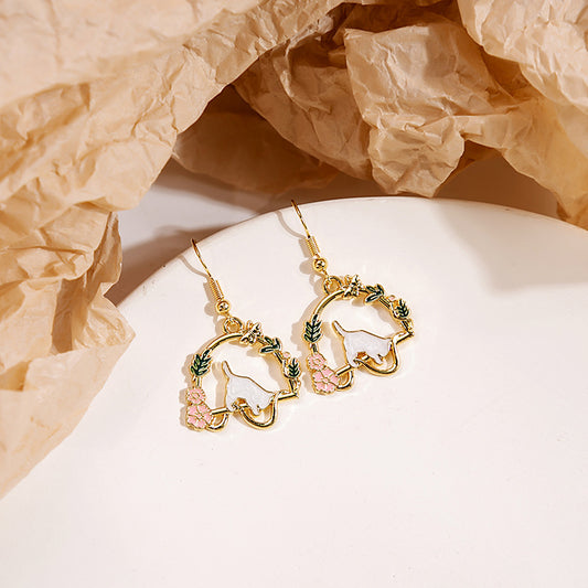 [1 PAIR] Playful Kitty with Flowers Earrings