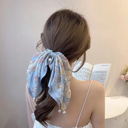 [1 PIECE] Shimmery Gauzy Knotted Hair Tie with Faux Pearls