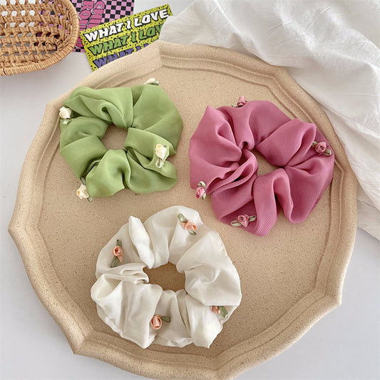 [1 PIECE] Embroidered Flower Mesh Fabric Scrunchie