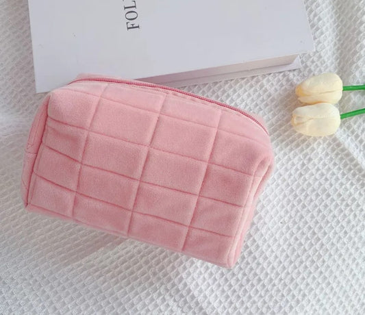 [2 PIECES] Soft Quilted Makeup Pouch and Spa Headband Set