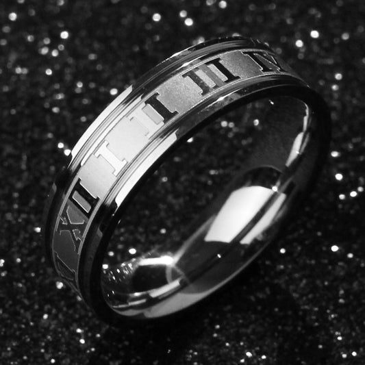 [1 PIECE] Roman Numeral Titanium Steel Plated Ring