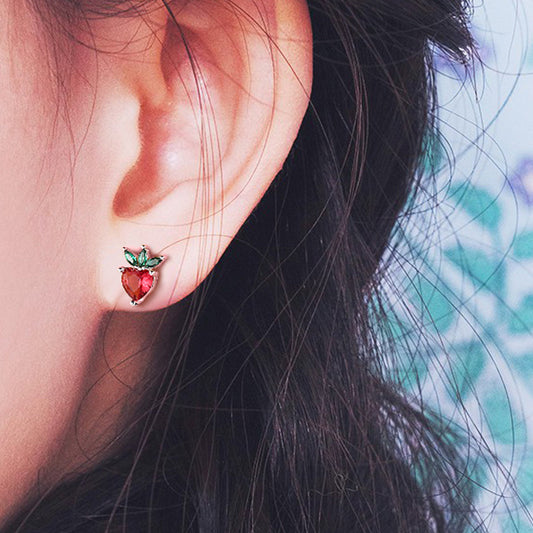 [1 PAIR] Strawberry Stud Sterling Silver Earrings
