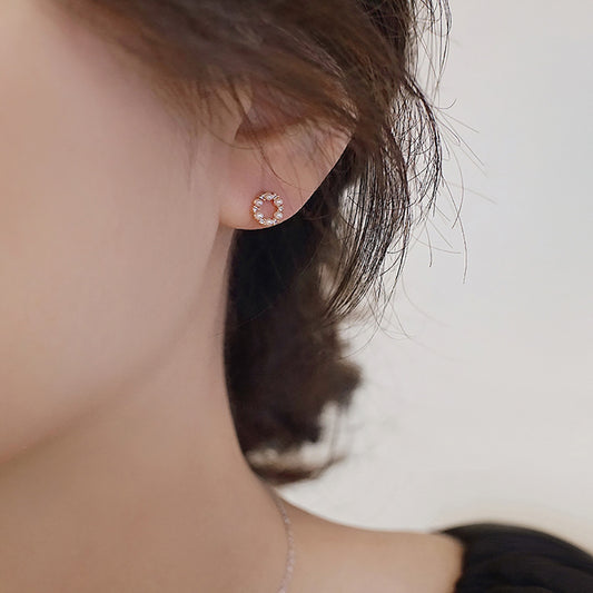 [1 PAIR] Faux Pearl and Zircon Circlet Sterling Silver Earrings