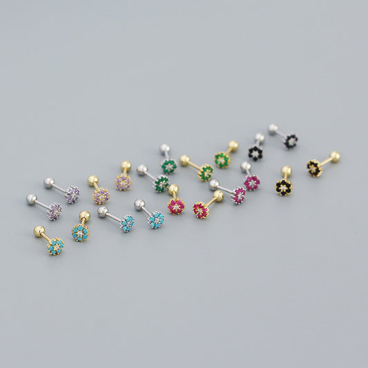 [1 PAIR] Turquoise and Rhinestone Flower 925 Silver Stud Earrings